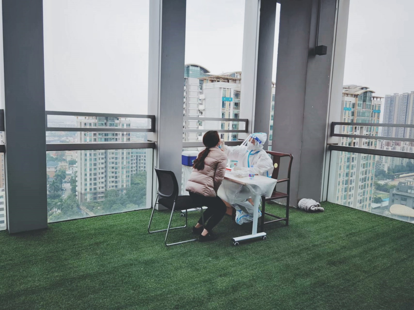 12月13日,欢创集团安排核酸检测机构上门服务,核酸检测费用由企业统一承担。上门核酸检测,既方便了员工,同时也降低了人员在检测点聚集的风险和缩短了等待的时间。