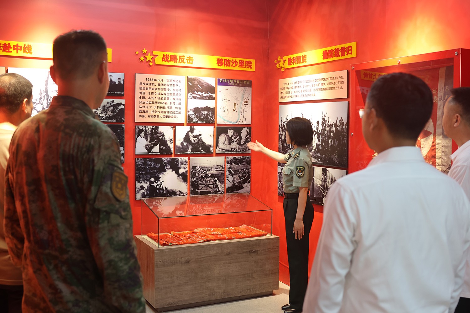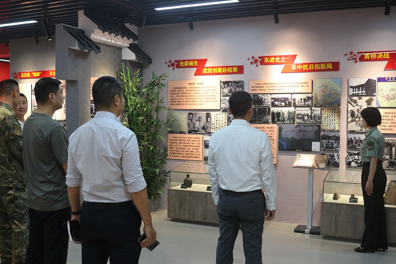 欢创集团与嘉驰国际代表一行参观了部队团史馆,详细了解了老虎团的发展历程与丰功伟绩。